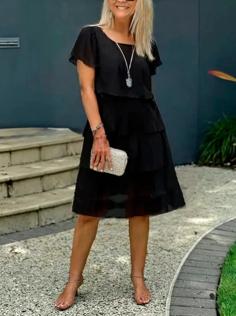 Sia™ | Stilfuld Lagdelt Sort Kjole
