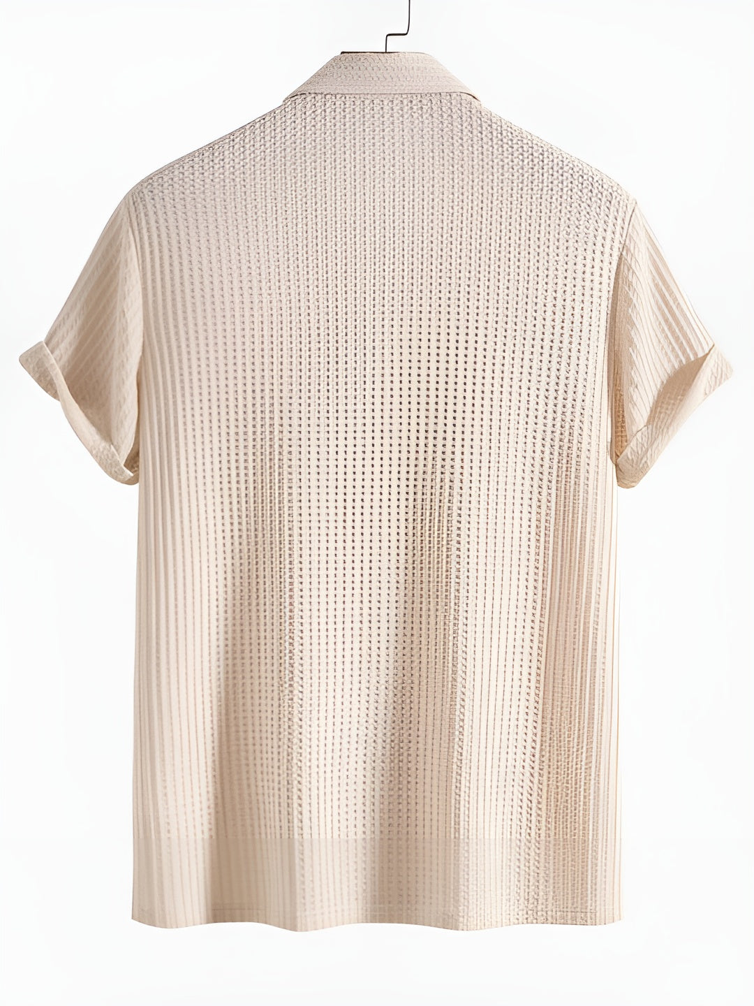 Klassisk polokrave med tre-knaps lukning og diskrete detaljer.