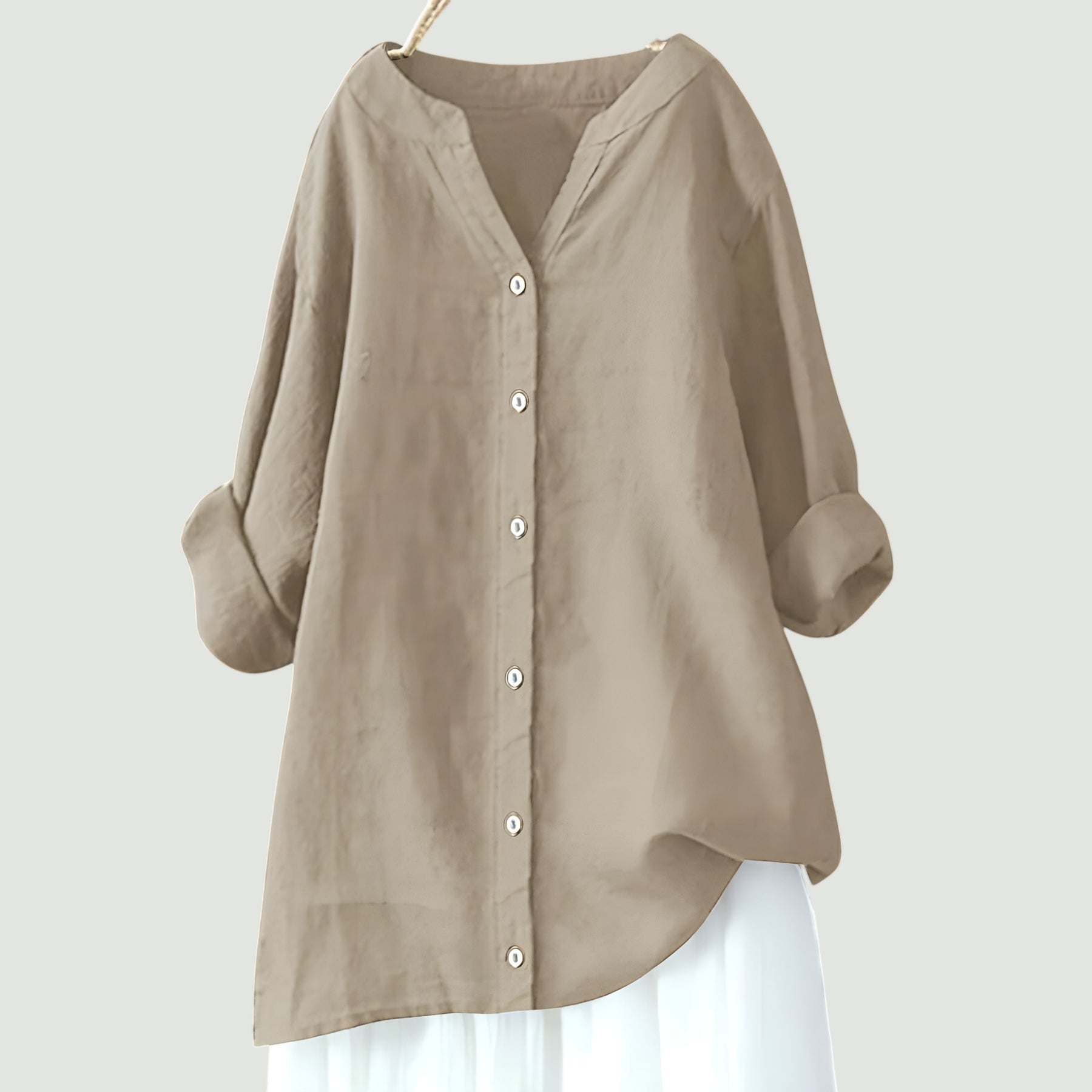 Vera-toppen er lavet af åndbart hør, som føles blødt og holder dig kølig på varme dage. Den løstsiddende pasform gør den nem at bevæge sig i, uden at den strammer. Uanset om du skal på stranden, gå en tur eller nyde en middag, passer denne top til både krop og anledning.