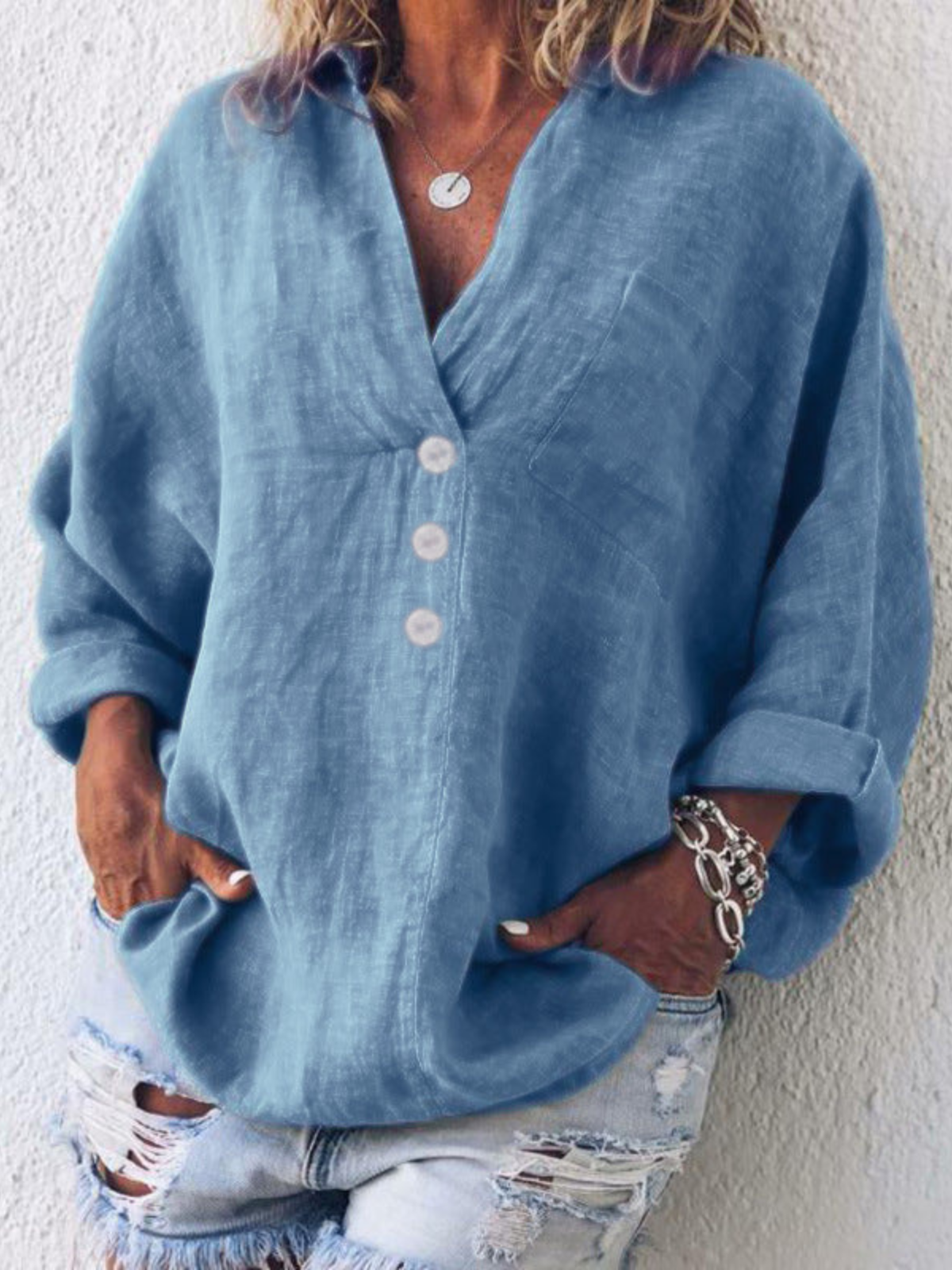 Freja™-toppen er lavet af en åndbar blanding af bomuld og hør, hvilket gør den blød og holder dig kølig på varme dage. Den løstsiddende pasform sikrer komfort og bevægelsesfrihed, mens det elegante design passer til forskellige lejligheder.